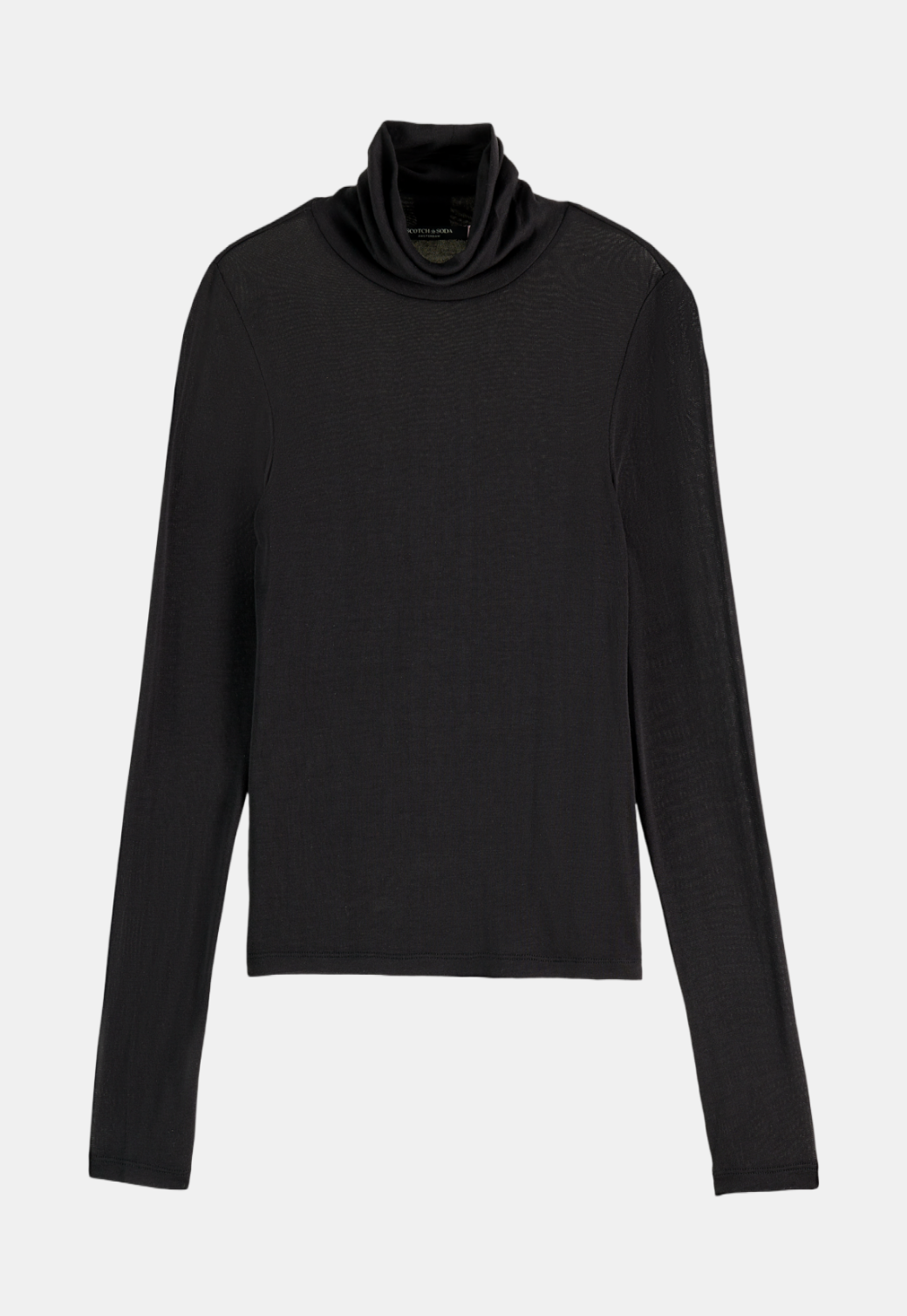 חולצה ארוכה לנשים מבית המותג סקוצ' אנד סודה. בגזרה נינוחה מבד שקפקף, עם צווארון גולף ושרוולים ארוכים.